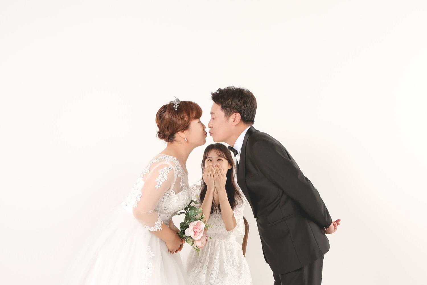 2가지 컨셉(리마인드웨딩 / 가족사진)인원수 추가비용 없어요의상대여비 포함액자 1개 (60cm x 40cm)헤어&메이크업 +10만원(여,남) 2분만 가능 [선택사항]가족단
